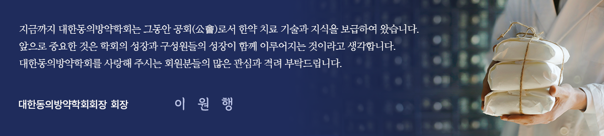 앞으로 대한동의방약학회는 강의를 통한 지식과 기술의 보급 외에도, 회원 참여 학술발표를 지원하여 각자의 진료실에서 터득한 경험이 사장되지 않고 서로의 성장에 도움이 될 수 있도록 하는 중계기지가 될 수 있도록 힘쓰겠습니다.